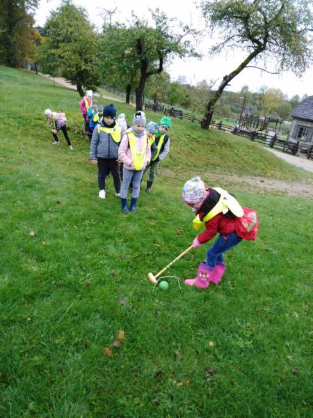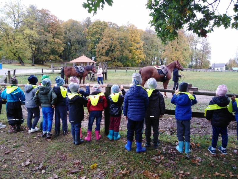 Spalio 15 d. „Pelėdžiukų“ grupės vaikai, kartu su auklėtoja Gintare ir jos padėjėja Violeta, apsilankė Kurtuvėnuose. Kiek įspūdžių patirta! Pasigrožėta didžiuliu rudenėjančiu parku, prisiminti medžių pavadinimai, stebėtasi jų dydžiu bei išsišakojimu. Keliaujant pagal paslaptingo laiško aprašymą ir senovinio žemėlapio nuorodas, buvusioje Kurtuvėnų dvaro sodybos aplinkoje ieškota „Laimės pasaga“. O suradus pasagą sužinota, jog būtinai ji turi kabėti virš durų, kad „laimė į ją subyrėtų“. Susipažinta su senoviniais dvaro pastatais, svarstyta, kodėl tokie įdomūs ir negirdėti pavadinimai bei jų reikšmės. Sužaista ir dvariško žaidimo, kroketo, partija. Išgirdus padavimą apie milžino klumpes, smalsiai aplankyta ratinėje įsikūrusi milžinų ekspozicija. Drąsiausieji priešmokyklinukai išmėgino pramogą – jojimą žirgais. Daug įdomių dalykų sužinota, daug pamatyta ir, anot Ąžuolo, „ne paskutinį kartą apsilankyta“!