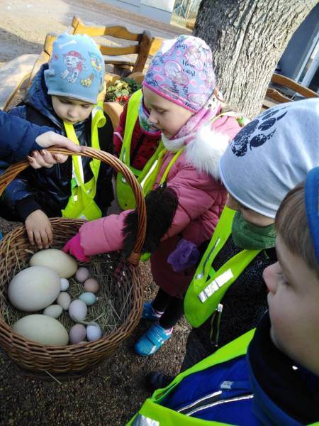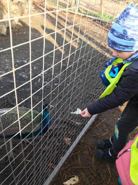 Lapkričio 6 d., „Pelėdžiukų“ grupės vaikai, lydimi priešmokyklinio ugdymo pedagogės Gintarės ir jos padėjėjos Violetos, apsilankė veislinių paukščių ir naminių gyvūnų ūkyje „Raiba plunksna“. Ūkyje daug pamatyta ir labai įdomių dalykų sužinota! Vaikus nustebino paukščių įvairovė ir gausa, stebėtasi paukščių plunksnų grožiu, jų dydžiu, spalvingumu, gyvūnu draugiškumu juos glostant ir maitinant. Sužavėjo miniatiūrinių pelyčių, laboratorinių žiurkių, jūrų kiaulyčių, dekoratyvinių triušių draugiškumas vaikams. Aptartos ūkio gyventojų gyvenimo sąlygos, pakalbėta apie maistą, net nustebinti vaikai – stručio mėgstamiausias užkandis – svogūnai! Šio paukščio žingsnis išmatuotas „gyva vaikų grandinėle“. O ar sunku danieliams, dovydams, elniams nešioti ragus, klauskite priešmokyklinukų – jie juos net „pasimatavo“! Iš ūkio sugrįžta su puikiomis emocijomis, džiugia nuotaika ir besidalijant gausybe įspūdžių. O jų tikrai buvo daug!