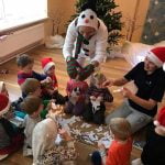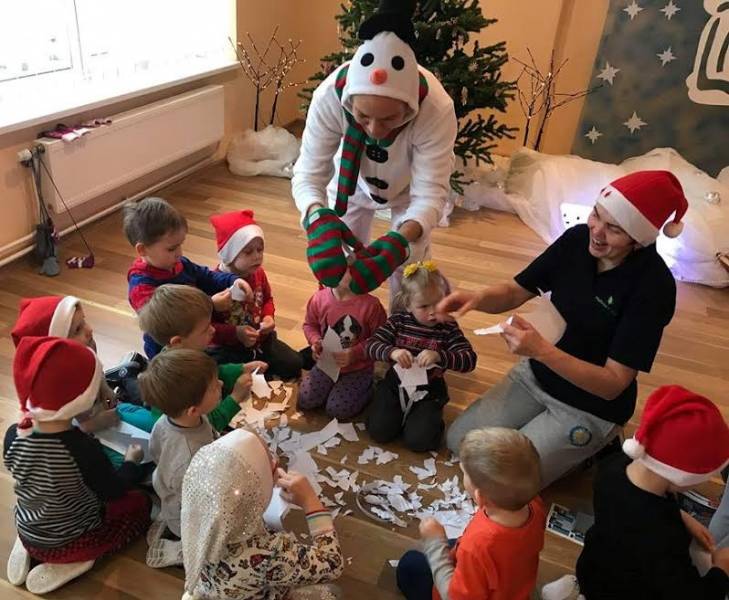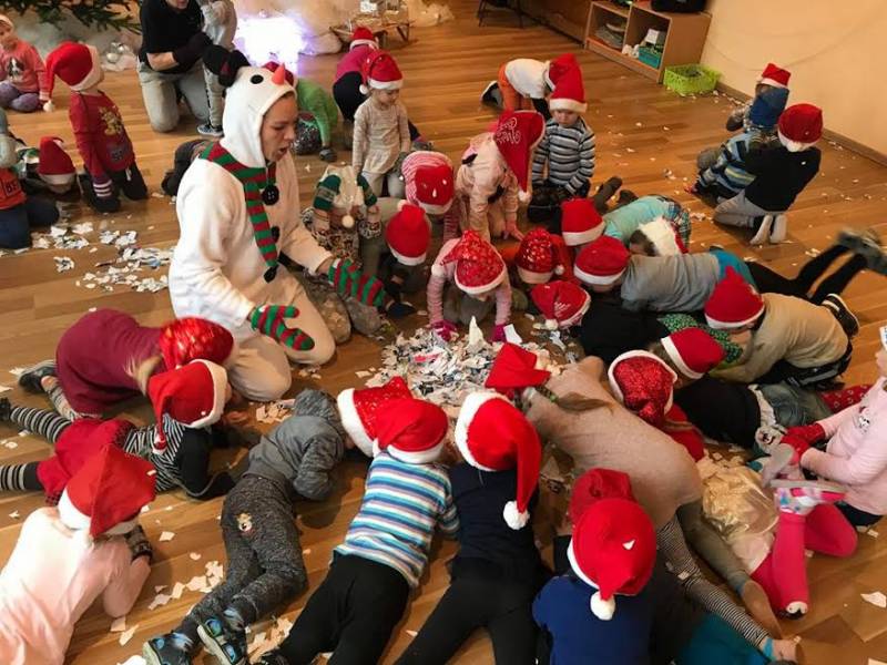 Gruodžio 4 d. į „Mankštiados“ pramogą ugdytinius palydėjo sniego senis, atskubėjęs iš pažliugusio kiemo. Kad išliktų tvirtas sniego senis ragino visus mankštintis kartu su juo. Nykštukais tapę vaikai uoliai atliko demonstruojamus linksmus pratimus, kuriems kaip priemonės buvo naudojamos tiesiog pirštinės. Kieme nelikus sniego besmegenis paprašė vaikų pagaminti jo salėje. Mikliais savo pirštukais ugdytiniai priplėšė popierines pusnis ir su jomis dūko: mėtė, sėmė saujomis ir vėl ir vėl mėtė, atliko pūtimo pratimus, akimirką atsipalaidavo gulėdami ir klausydami žiemiškos muzikos. Radę dirbtinių sniego gniūžčių mėtė jas į taikinius. Sniego seniui pasmalsavus, kas labiausiai patiko vaikams, sulauktas atsakymas-„plėšyti“-smulkiosios motorikos pratimas, kurį nuo senų laikų taikė mūsų, jau suaugusiųjų, močiutės, mamos.