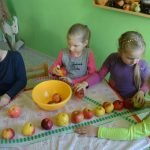 Mūsų darželis nuo šio rudens įsitraukė į respublikinį projektą „Sveikatiada“. „Sveikatiada“ – tai ilgalaikė sveikatos ugdymo programa, kuri suteikia vaikams žinių ir praktinių įgūdžių apie sveikatą, mitybą ir fizinį aktyvumą. Projekto organizatoriai VšĮ „Tikra mityba“ siūlo vaikams organizuoti įdomius ir patrauklius renginius, kurių metu ugdytiniai plečia savo žinias ir supratimą sveikos mitybos ir fizinio aktyvumo srityse. Veiklose dalyvauti kviesime ne tik vaikus, bet ir pedagogus, administracijos darbuotojus ir tėvelius. Spalio mėnesį tėveliai su vaikais kūrė rudenines skulptūras. Iš viso sukurta 40 skulptūrų, kurios viena už kitą gražesnės, įdomesnės. Nestokota kūrybingumo, kruopštumo ir geranoriškumo. Na, o vaikai puikiai žinos, visas daržoves, jų naudą sveikatai ir panaudojimo galimybes. Didžiulį susidomėjimą sukėlė kuriami vienos spalvos stalai. Čia taip pat talkininkavo vaikučių tėveliai ir visi bendromis jėgomis sukūrė puikius žalios, oranžinės, raudonos ir geltonos-oranžinės spalvos vaisių, daržovių ir kitokių rudens gėrybių stalus. Vaikai apie sukurtus grožius atsiliepė – Brigita: „Ant stalo vitaminų bomba“, Pijus: „Tokio „kieto“ stalo noriu namuose“, Domantė: „Sultys daug skanesnės, kai apelsinas apkabinęs stiklinę“, Beata: „Galėtų tai būti gimtadienio stalas“, Svajūnė: „Žalia, kaip žolytė, viską suvalgysiu“. Na, ir žinoma, kaip be ragavimo, nuo tokių stalų visos gėrybės buvo labai skanios. Besivaišinant kalbėtasi apie sveiką mitybą, apie vitaminus ir kaip nesirgti.