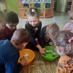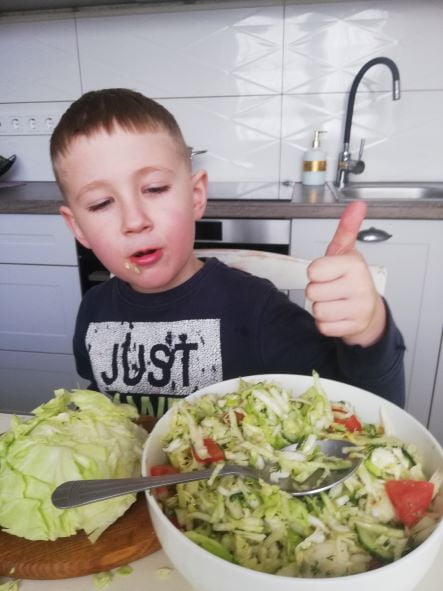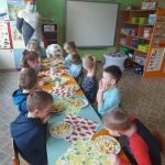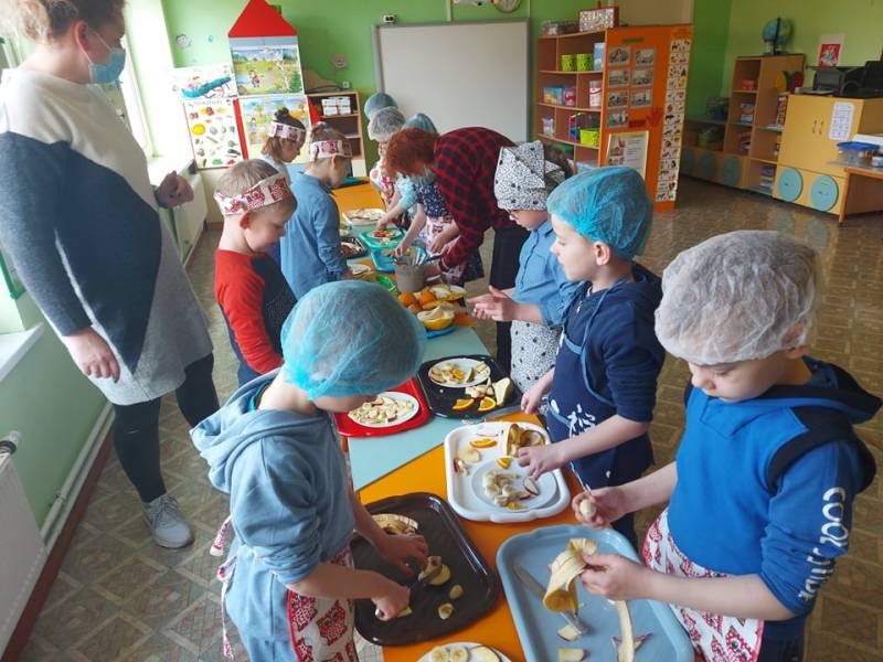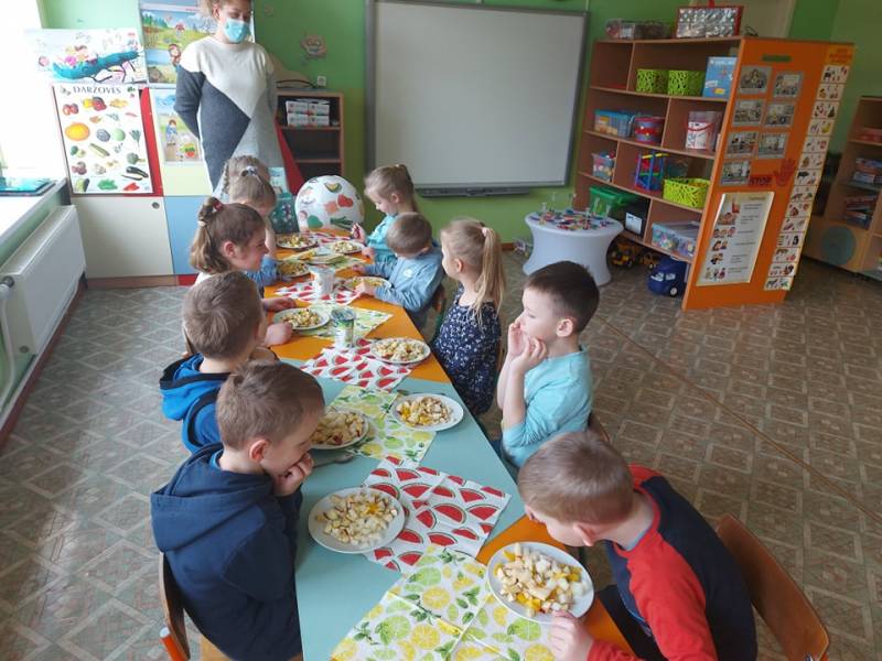 Kovo – balandžio mėn. laikantis sveikos mitybos principų bei skatinant mityboje kuo daugiau vartoti augalinės kilmės produktų „Pelėdžiukų“ grupės ugdytiniai kartu su šauniausiomis auklėtojomis bei visuomenės sveikatos specialiste Asta priėmė „Sveikatiados“ mestą iššūkį sudalyvauti „Pietų kovose“ ir į maistą pažiūrėti kitu kampu. Šios veiklos metu įsitikinome, kad maistas gali būti ne tik skanus ir sveikas, bet jį ruošti galima be galo smagiai ir išradingai. Vaisių koliažai lėkštutėse virto puikiomis salotomis ir žaidžiant sveikos mitybos žaidimą apžiūrėk, pauostyk, paragauk pamaitino mūsų akis, smegenis bei pilvukus. „Drugelių“ grupės ugdytiniai iššūkį priėmė namuose drauge su savo tėveliais, kartu ir juos įtraukdami į veiklą.