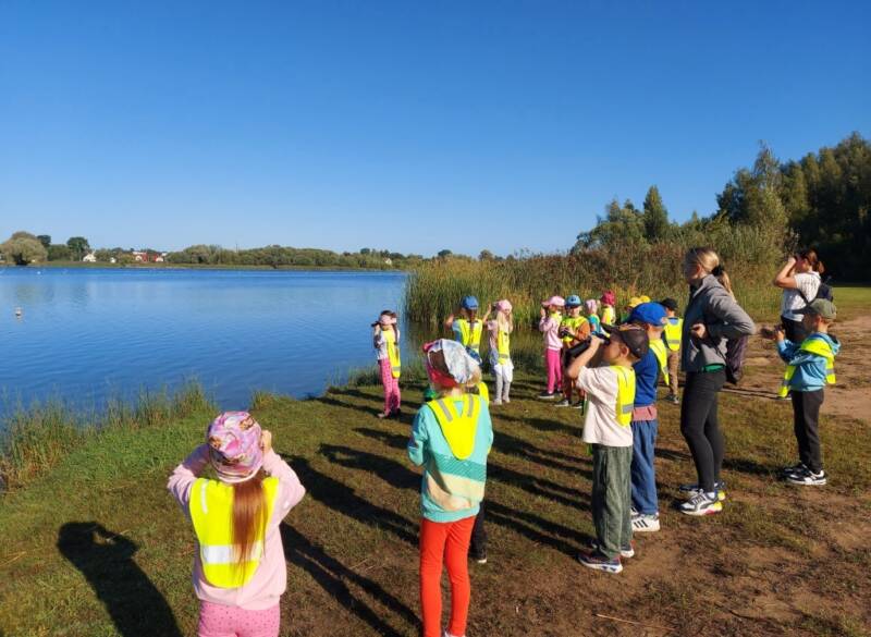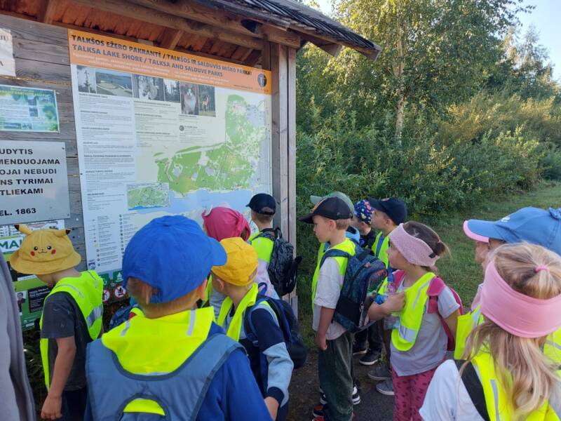 Rugsėjo 11 d., priešmokyklinės „Pelėdžiukų“ grupės ugdytiniai įgyvendino Šiaulių rajono savivaldybės administracijos finansuojamo projekto „Mažieji gamtos saugotojai“ vieną iš veiklų – dalyvavo Šiaulių jaunųjų gamtininkų centro edukaciniame užsiėmime „Gamtos stebuklai Talkšos ekologiniame take“. Mažieji keliautojai, kartu su edukatore Inga, apkeliavo dalį Talkšos ekologinio tako stotelių, surado stulpus, žyminčius stoteles, informaciją apie pakrantės svarbią bei įžymią vietą, apžiūrėjo informacinius tako stendus. Ekologiniame take vaikai stebėjo šaltinį, klausėsi pasakojimo apie jį, domėjosi, kuo jis skiriasi nuo kitų vandens telkinių. Susipažino su ežero pakrantės augalija, žolynais, žolėmis, mikroflora. Talkšos ežere, pro žiūronus priešmokyklinukai stebėjo plaukiojančius paukščius, aptarė jų išvaizdą, kūno sandarą. Pasinaudoję žiūronais, stebėjosi ežero gamtos grožiu, ieškojo gamtos vaizdų net kitoje ežero pusėje! Miške žygeiviai veikė komandiškai! Kartu su edukatore prisiminę miško augaliją ir gyvūniją, ieškojo vabalų, augalų, juos skaičiavo, tyrinėjo pro mikroskopą, savo radinius reprezentavo vieni kitiems. Priešmokyklinukų pastebėjimu, tai išvyka, „kurioje labai daug įdomių atradimų ir smagių dalykų!“.