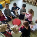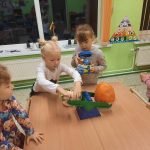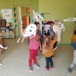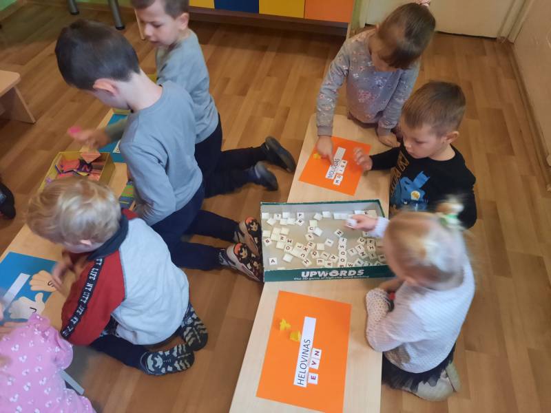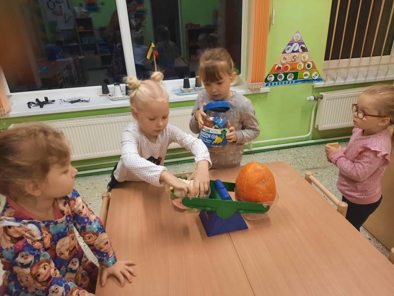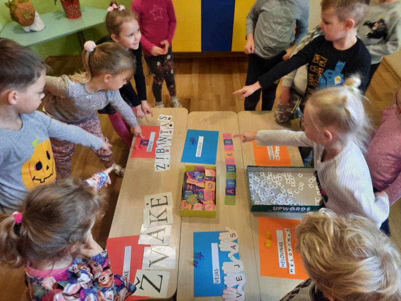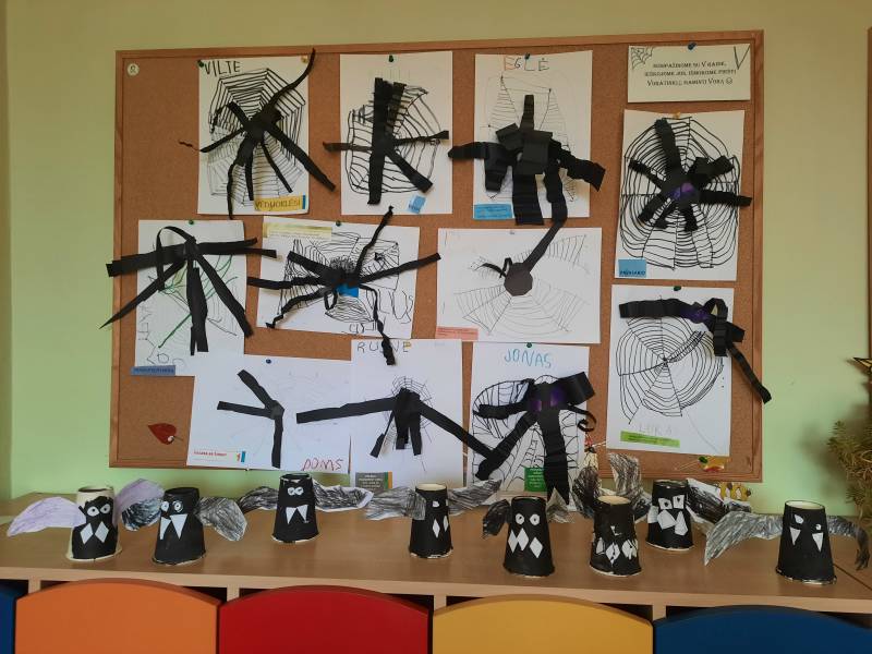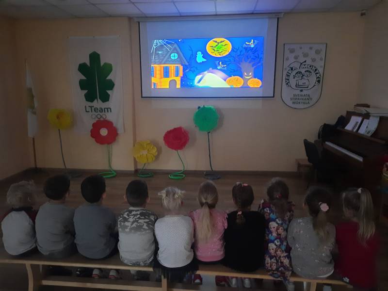 Spalio 25-29 dienomis „Ramuniukų“ grupėje ugdymas vyko helovino tema. Kiekvienas rytas prasidėdavo skaitiniais prie žibinto šviesos, vaikai sudalyvavo net kino seanse. Girdėtos, matytos ir aptartos istorijos virto kūrybinėmis idėjomis: vaiduokliais, vorais, šikšnosparniais. Helovino žodynas bei jo pasufleruotos raidės tapo grupės mokymosi užduotimis: žodžių dėlionėmis, tarakonų, nešančių tam tikras raides, gaudynėmis. Vaikų pagaminti moliūgai išsirikiavo nuo mažiausių, pagamintų iš oranžinių balionų, iki popierinių, skirtų rašymo įgūdžiams lavinti. Su savo darbais vaikai žaidė, improvizavo, vertinosi juos. Žaisminga tema tapo naudinga ir ugdančia.