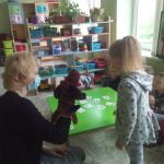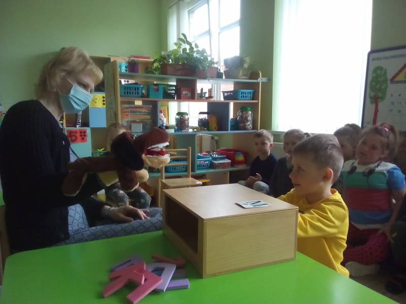 Gegužės 17 -21 d. „Drugelių“ grupėje vyko integruotos veiklos „Mūsų knygelės pilnos raidelių“ su logopede. Logopedė, kartu su šuniuku Amsiu, susipažino su vaikais, žaidė žaidimus „Pasakyk savo vardą ir pirmą garsą“, „Raidžių laikrodis“, vaidino pasaką, gamino knygoms skirtukus. Virtualioje erdvėje bendravome su socialiniais partneriais – A. Griciaus bibliotekos darbuotojomis. Vaikai nudžiugo, pamatę herojus – Zuikius, kurie papasakojo ir parodė įvairių rūšių knygelių. Išklausyta pasakaitė „Istorija apie triušelį Petriuką“, kurią vaikai iliustravo, o piešinukai eksponuoti A. Griciaus bibliotekoje. Veikla vaikams suteikė džiugių emocijų ir praturtino kalbinius gebėjimus!