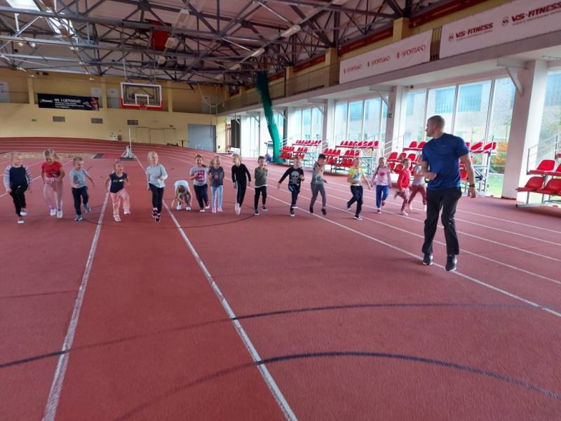 Rugsėjo 20 d., priešmokyklinės „Pelėdžiukų“ grupės ugdytiniai, lydimi pedagogės Gintarės, jos padėjėjos Linos ir mokytojos padėjėjos Irmos, įgyvendino vieną iš Lietuvos tautinio olimpinio komiteto finansuojamo projekto „Mažieji „Purienos“ atletai“ veiklų – apsilankė Šiaulių lengvosios atletikos ir sveikatingumo centre. Vaikai, kartu su treneriu Evaldu, aiškinosi sporto treniruotės eigą, sužinojo, kurie pratimai būtini lavinti įvairias raumenų grupes, svarstė, kodėl reikalingas kūno apšilimas prieš intensyvias treniruotes. Viskas išbandyta praktiškai – kartu su treneriu atlikti įvairūs apšilimo pratimai, išmėginta šuolio į aukštį sporto šaka, bėgta estafetiniu bėgimu per sportinius šokliukus, stumtas vieno kilogramo svorio kamuolys. Treniravomės labai rimtai, bet ir labai smagiai! Dėkojame treneriui už aktyvią treniruotę!