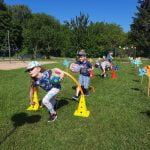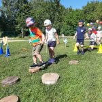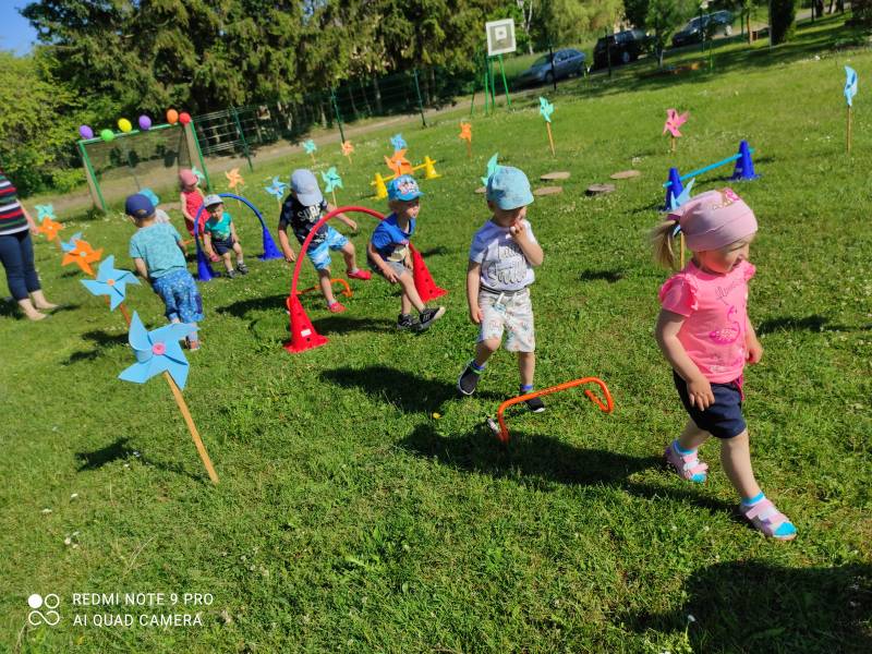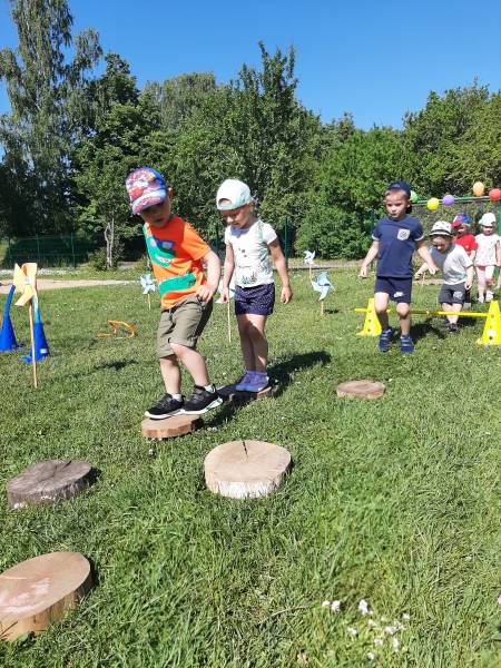 Birželio 10 d. puikus oras ugdytinius sukvietė į kiemą dalyvauti pramogoje ,,Šok per kliūtį, ją pralįsk, apibėk ir dar sugrįžk“. Tai viena iš projekto „Olimpinė karta“ veiklų, kuriomis siekiama ugdyti vaikų fizinio raštingumo pradmenis, formuojančius tinkamą požiūrį į fizinį aktyvumą, jo realizavimą kasdienėje aplinkoje. Vaikai savo fizines galias tvirtino atlikdami peršokimo, pralindimo pratimus. Atliko skirtingus šuolius, panaudodami įvairias priemones – ir sportines, ir gamtines. Pramogos dalyviai varžydamiesi vis rodė, kaip geba vienas už kitą aukščiau pašokti.