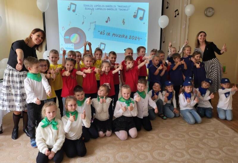 Spalio 22 d. „Pelėdžiukų“ grupės 6 atstovai – Ugnė, Rokas, Ąžuolas, Jorė, Paulina, Karilė lankėsi Šiaulių lopšelyje-darželyje „Rugiagėlė“ organizuotoje muzikinėje viktorinoje „Aš ir muzika – 2024“, skirtoje tarptautinei muzikos dienai paminėti. Ugdytinių komanda buvo parengusi trumpą, nuotaikingą prisistatymą. Muzikinė viktorina aktyviai įtraukė visus dalyvius į veiklas, skatino bendradarbiavimą, bendravimą, sukūrė draugišką ir linksmą aplinką. Ugdytiniai atliko įvairias, smagias muzikines veiklas: ritmavo, klausydami muzikos turėjo pasakyti, kur ji skamba, surasti teisingą muzikos instrumentą. Vaikai sužinojo, praktiškai išsiaiškino, kad groti galima ne tik muzikos instrumentais, bet ir su taurėje esančiu vandeniu, braukdami taurės paviršiumi su pirštu. Vieni išgirdo žemus, kiti aukštus garsus. Buvo įdomi patirtis ir džiaugėmės puikia muzikinių žinių įtvirtinimo veikla. Išreikšti kūrybiškumą ugdytiniai galėjo gamtos gėrybėmis puošdami ketvirtines ir aštuntines natas. O pertraukėlė neapsiėjo ir be zumbos šokio ritmų! Renginio pabaigoje visų dalyvių laukė padėkos ir dovanėlės. Vaikų šypsenos, bendrystė su bendraamžiais, sukūrė nepamirštamas akimirkas kartu! Įvairios, smagios veiklos leido visiems dalyviams pažvelgti į muziką naujai ir šiuolaikiškai.