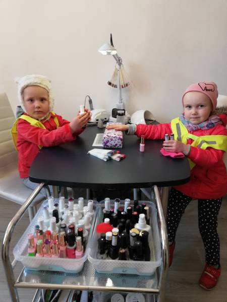 Balandžio 23-27 d. „Drugelių“ grupėje organizuota projektinė savaitė „Daug rankelių, daug darbelių“. Pasinaudojant informacinėmis technologijomis, knygomis,  plakatais susipažinome su įvairių specialybių atstovais. Įtvirtinant žinias, apsilankėme ne tik mūsų įstaigos virtuvėje, direktorės bei direktorės pavaduotojos ugdymui kabinetuose, bet ir vykome pas Šiaulių r. savivaldybės priešgaisrinės tarnybos Gruzdžių ugniagesių  komandą, ten Gabrieliaus tėvelis Aidas mums pademonstravo specialią aprangą, „pasislėpusias“ kopėčias, įjungė garsinį ir šviesos signalą. Norintieji galėjo atsisėsti už vairo, pasimatuoti šalmą, apžiūrėti sudėtus prietaisus. Vėliau užsukome ir į  „Agnės grožio studiją“, kur dirba Adrijaus mamytė Agnė.