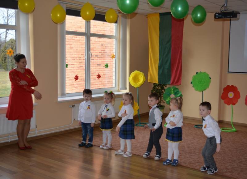 Vasario 14-osios ryte, lopšelio-darželio salėje vyko gražus ir prasmingas renginys, skirtas paminėti Vasario 16-ąją, Lietuvos valstybės atkūrimo dieną. 102-ąjį Lietuvos gimtadienį kvietė švęsti kartu vyresnioji meninio ugdymo mokytoja Vida ir vyresnioji priešmokyklinio ugdymo pedagogė Gintarė. Šventiškai nusiteikę, mažieji lopšelio – darželio ,,Puriena“ ugdytiniai, darbuotojai, pedagogai rinkosi į tautiniais motyvais papuoštą salę. Šventinis rytmetys prasidėjo „Tautiška giesme“, kurią rimtai nusiteikę giedojo ir vaikai, ir kiti šventės dalyviai. Patys gražiausi ugdytinių posmai, dainos, šokiai buvo skirti Lietuvai. Visi drauge pasidžiaugėme, kad gyvename Lietuvoje. „Aš myliu Lietuvą“, „Čia turiu savo namus“, „Mano šeima yra lietuviai“ – kalbėjosi ugdytiniai. O koks Lietuvos nepriklausomybės atkūrimo gimtadienis be sveikinimų ir fejerverkų! Dalyviams netrūko nei geros nuotaikos, nei įspūdžių! Mes labai mylime Lietuvą!